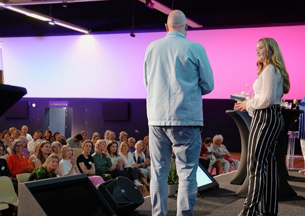 Met een flinke dosis energie en een scherpe voorbereiding stap ik het podium op. Serieus waar het moet, luchtig waar het kan. Sommige onderwerpen zijn al zwaar genoeg – juist dan is humor een krachtig middel om ruimte en lichtheid te brengen. Niet om af te leiden, maar om te verbinden. Want uiteindelijk draait het daarom: verbinding tussen sprekers en publiek, tussen beleid en praktijk, tussen hoofd en hart.